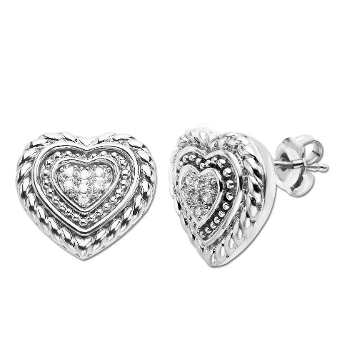 Sterling Silver Textured Diamond Heart-Shaped Earrings Features
